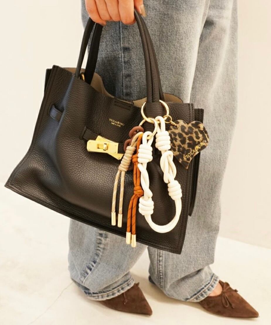 様々なスタイルのバッグにつけてお楽しみいただけるよう、カナビラが2つ付いているのもポイントでアレンジも自由自在◎