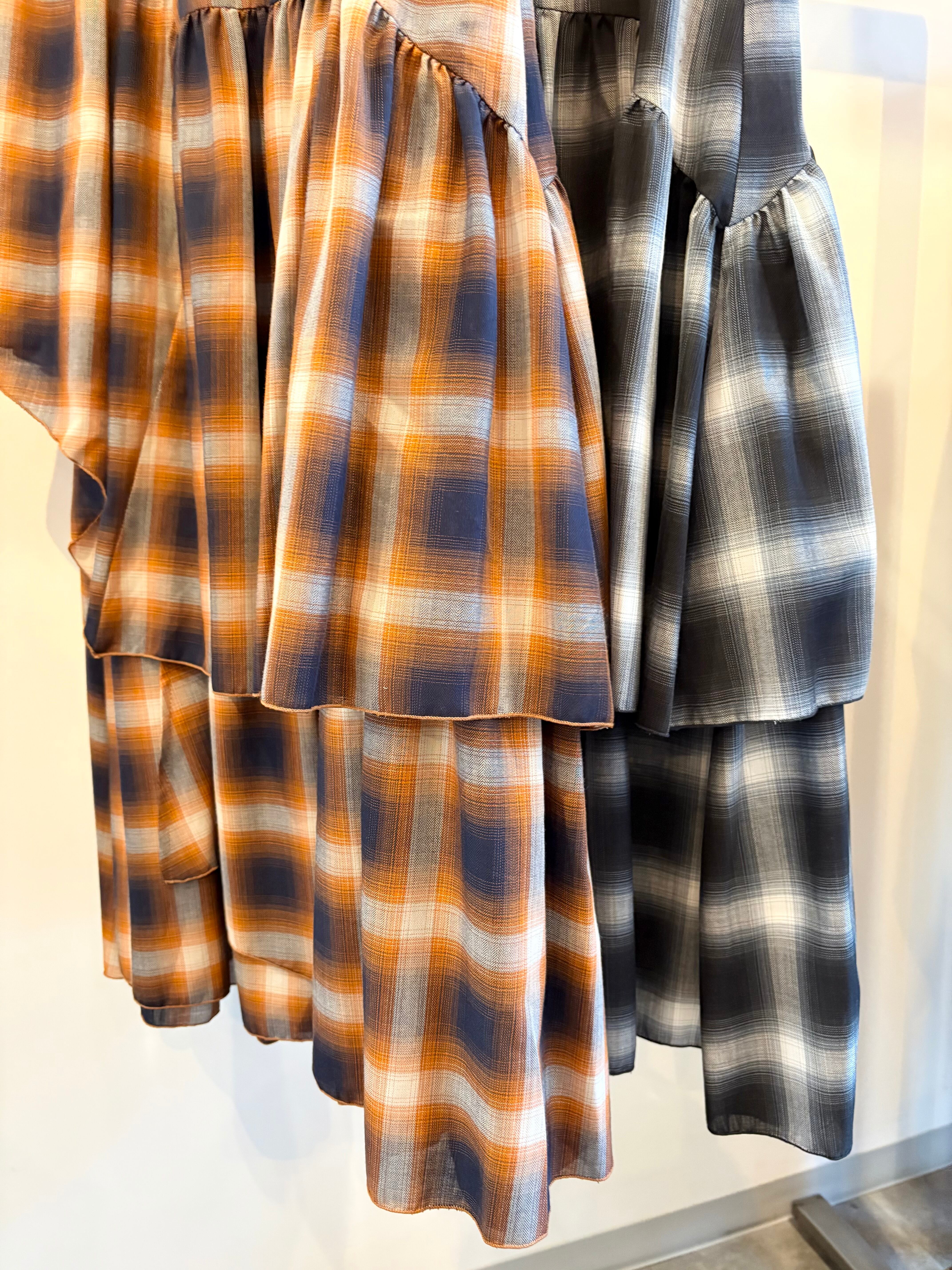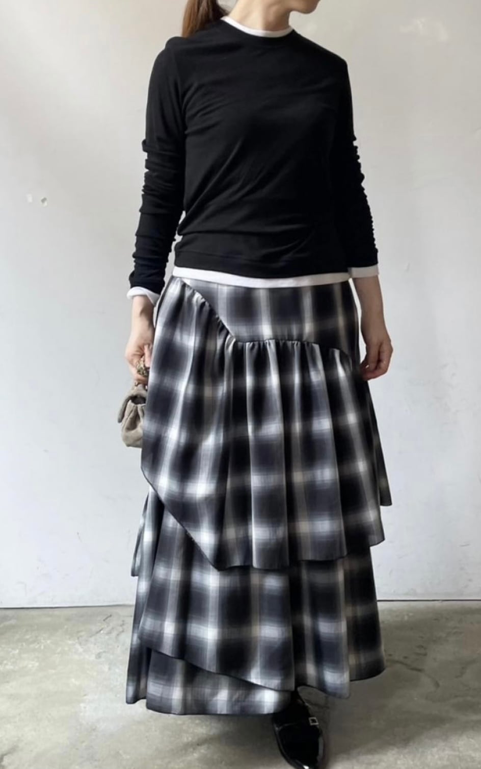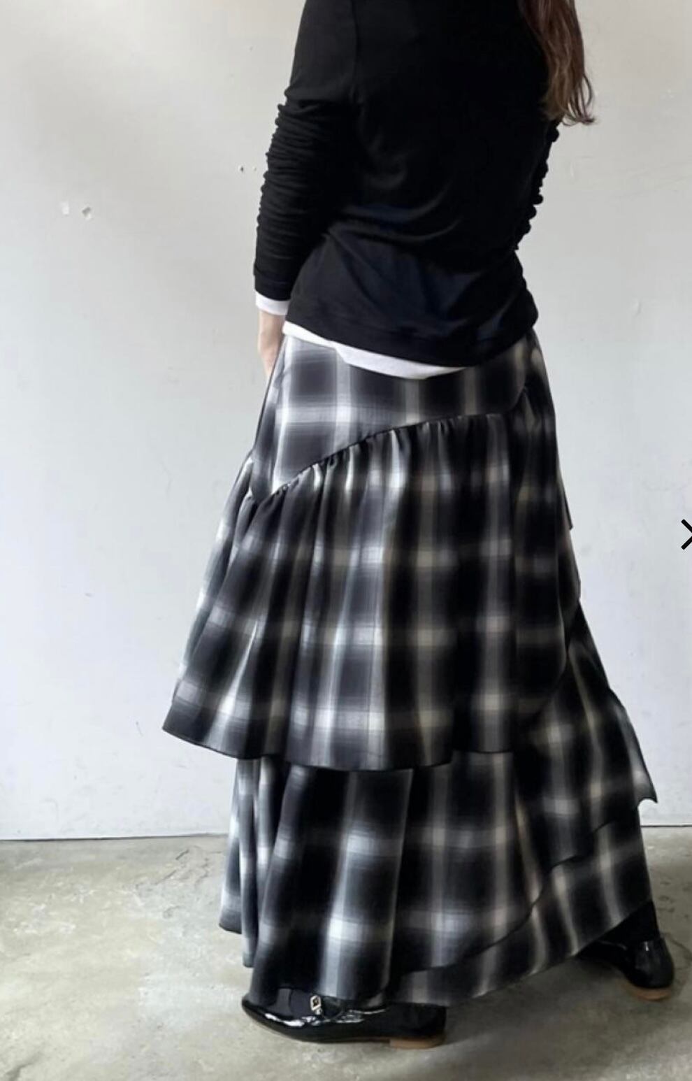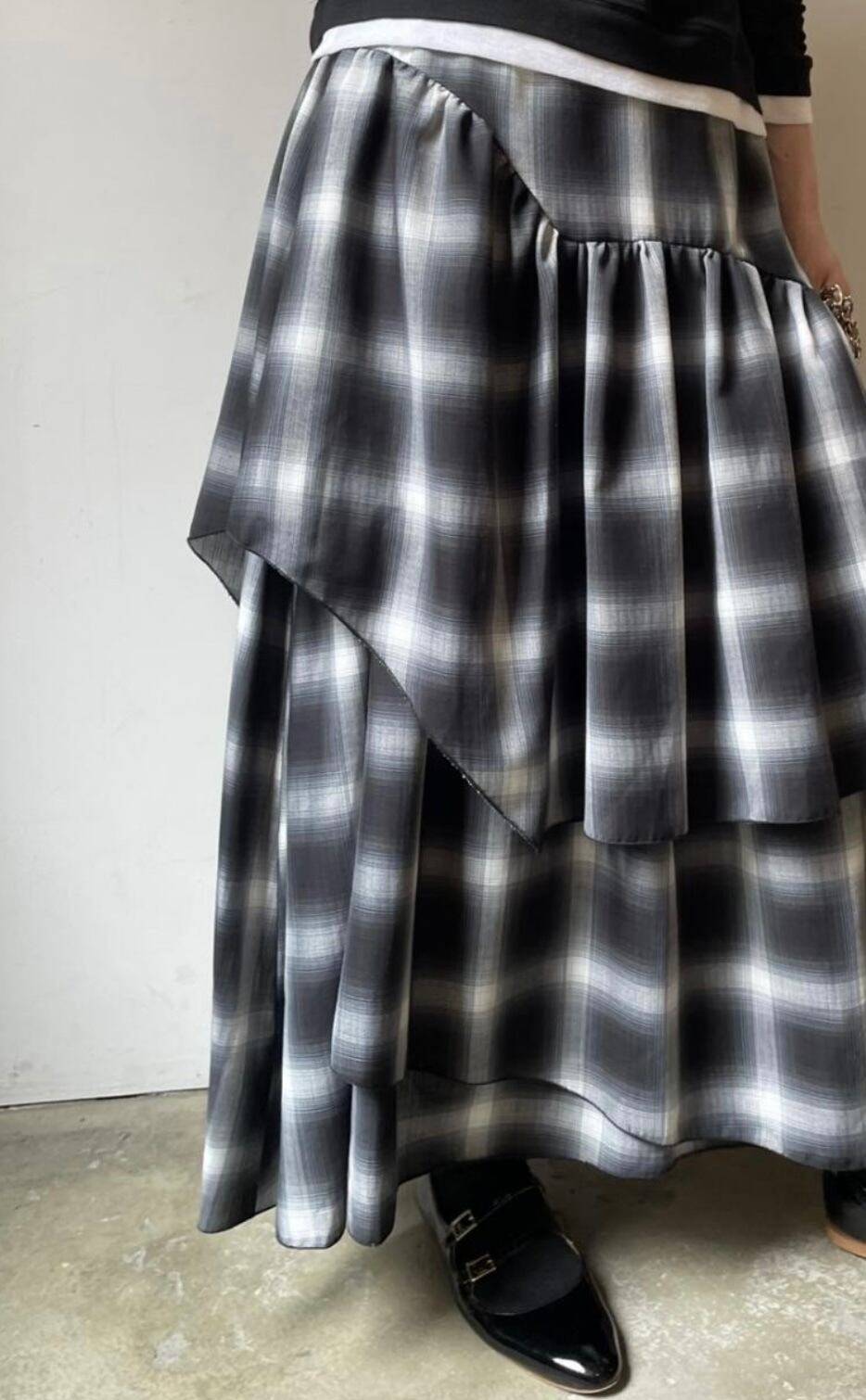 アシンメトリーなティアードデザインのチェック柄スカート♬