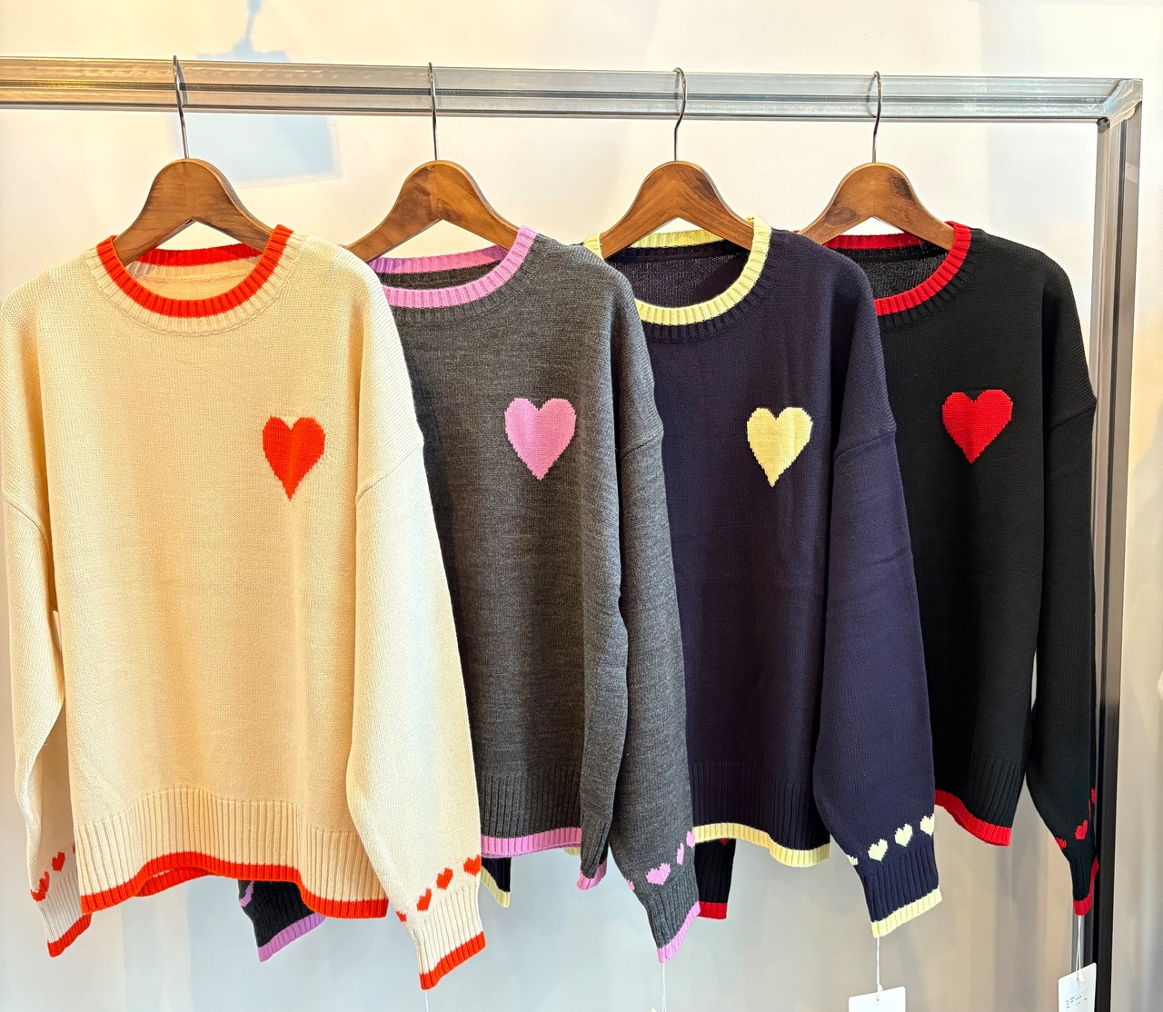 配色のハートデザインがアクセントになった大人かわいいニットプルオーバー✨