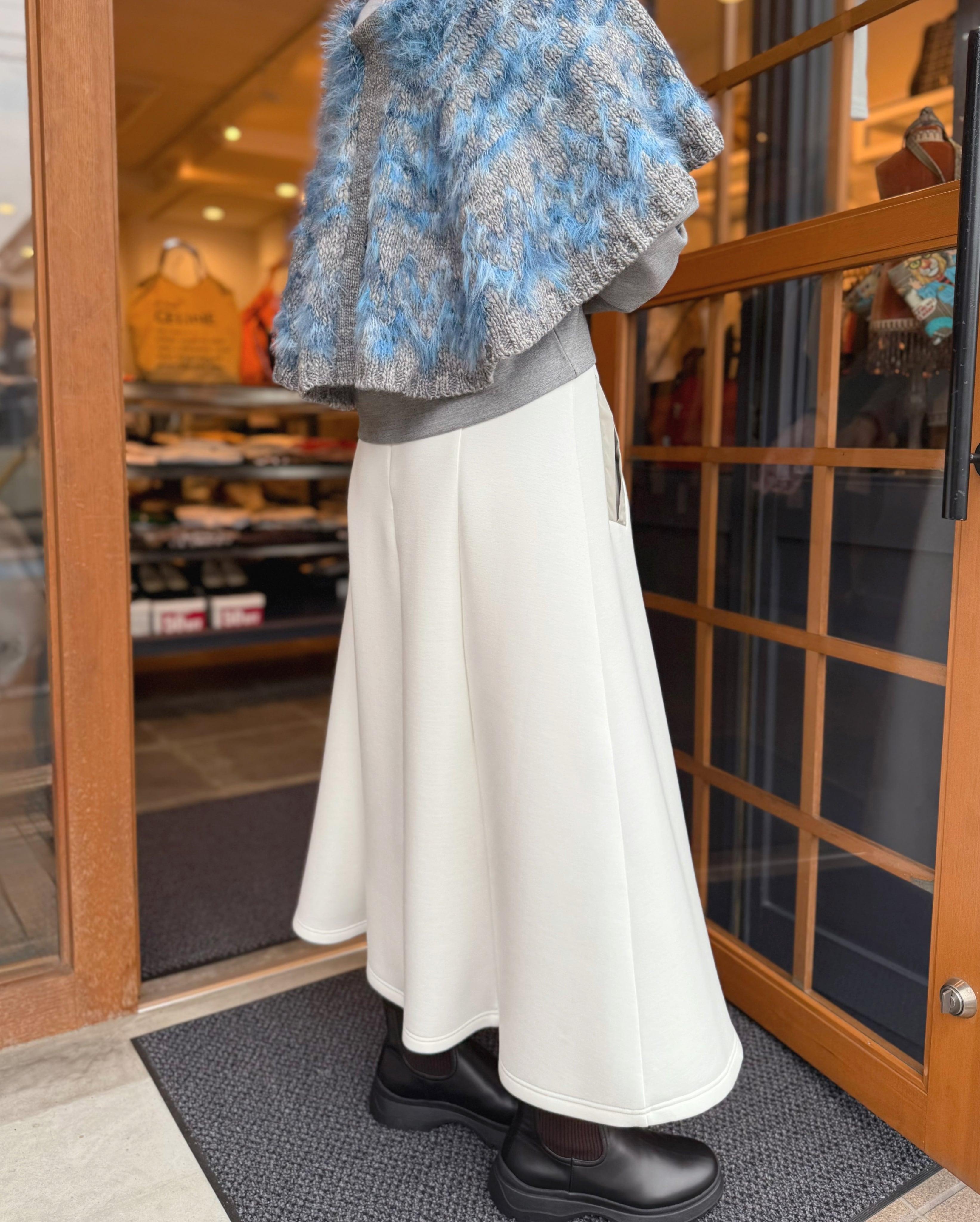 カジュアルにも綺麗めにも幅広いシーンに合わせやすいスカートです♪
