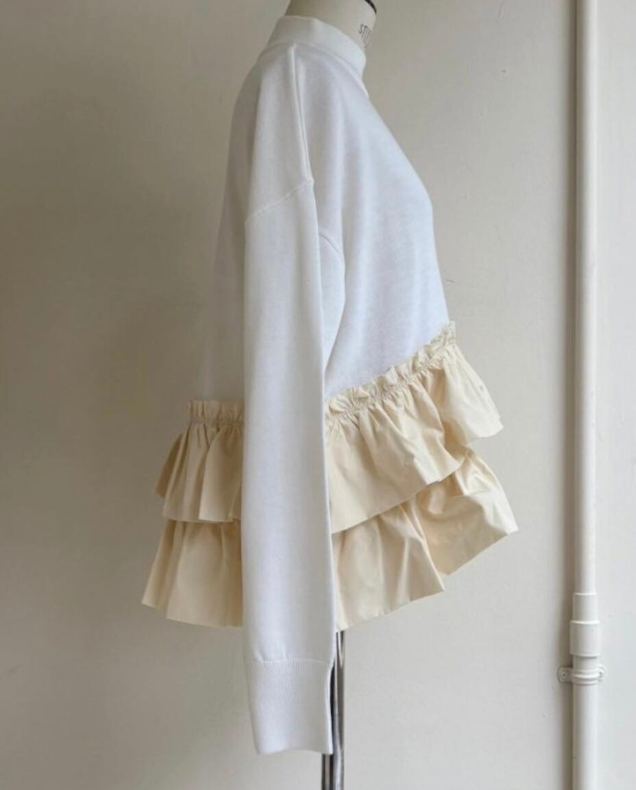 立体的なフリルが印象的な異素材ドッキングニットプルオーバー✨