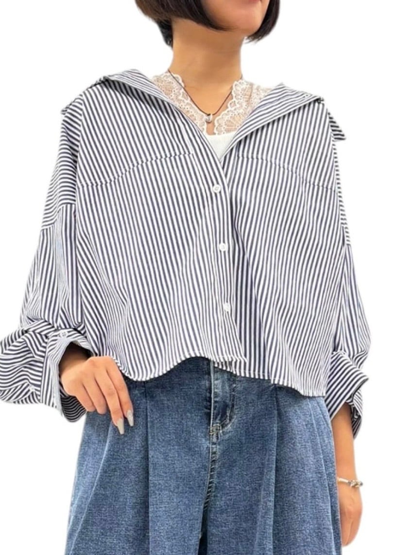 ストライプボタンタックスリーブシャツ ayane【アヤン】