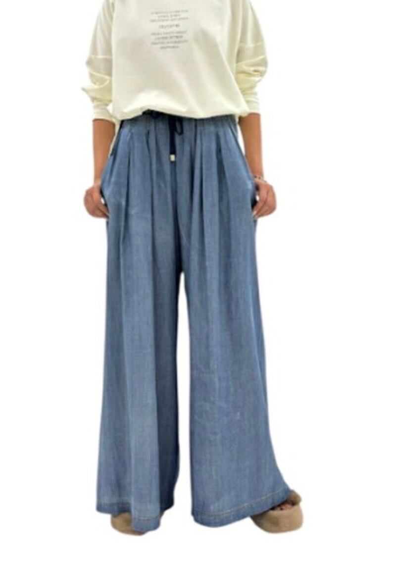 ソフトで軽やかなコットンシアーデニム生地のワイドパンツ✨