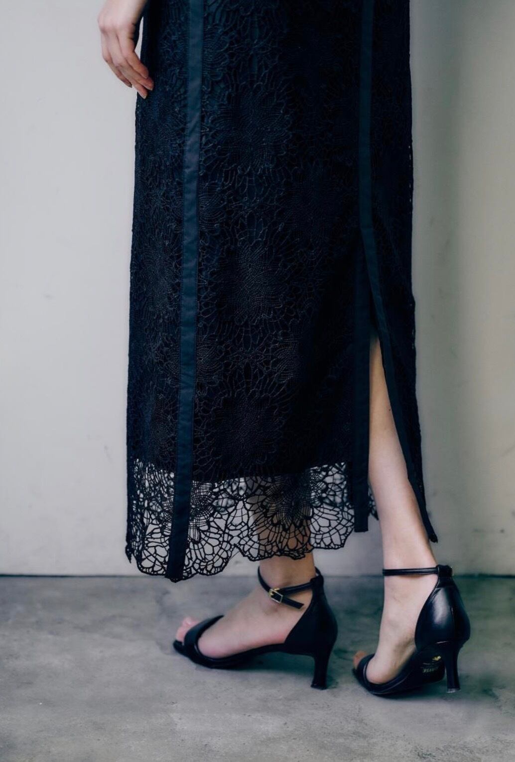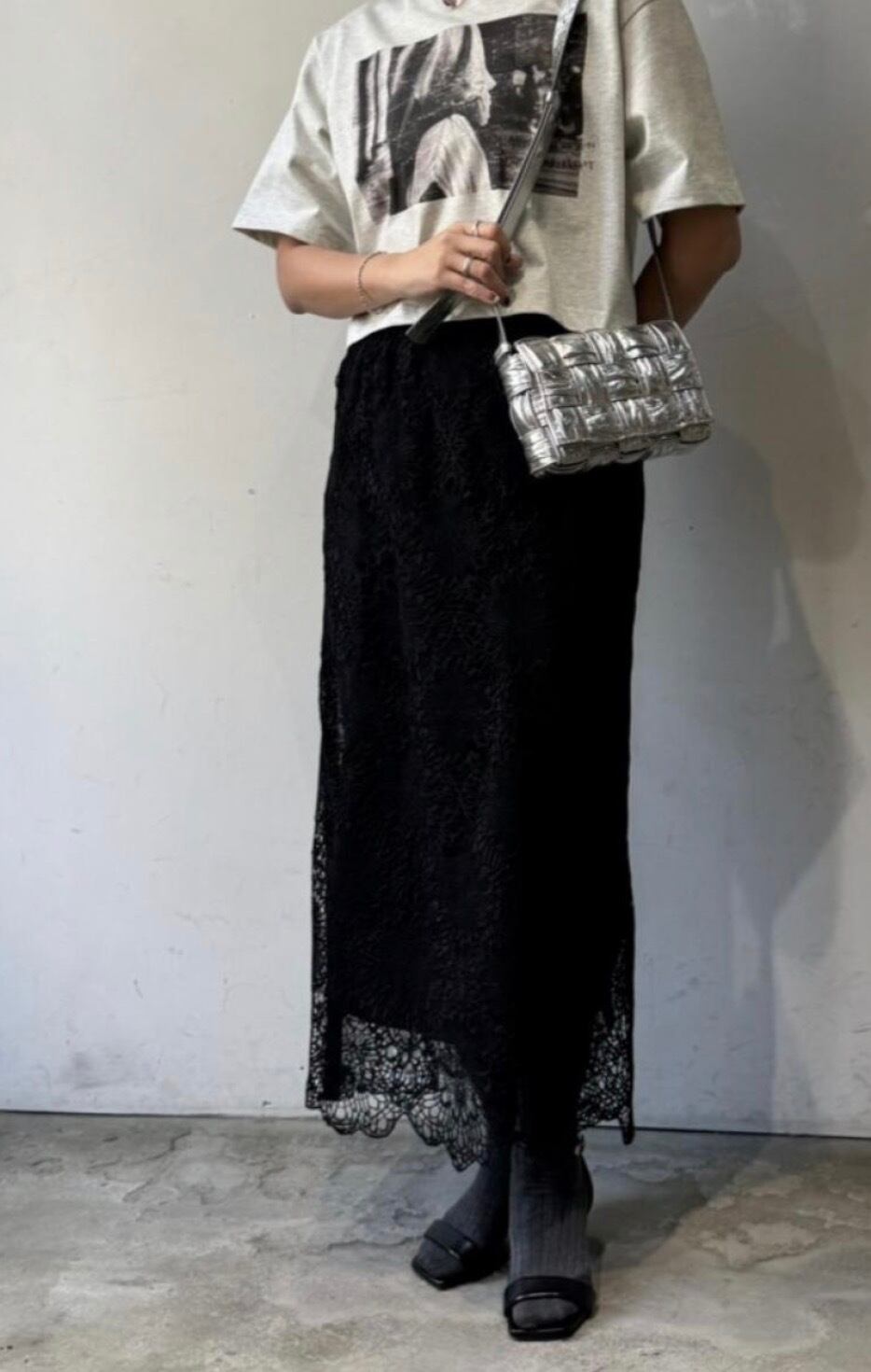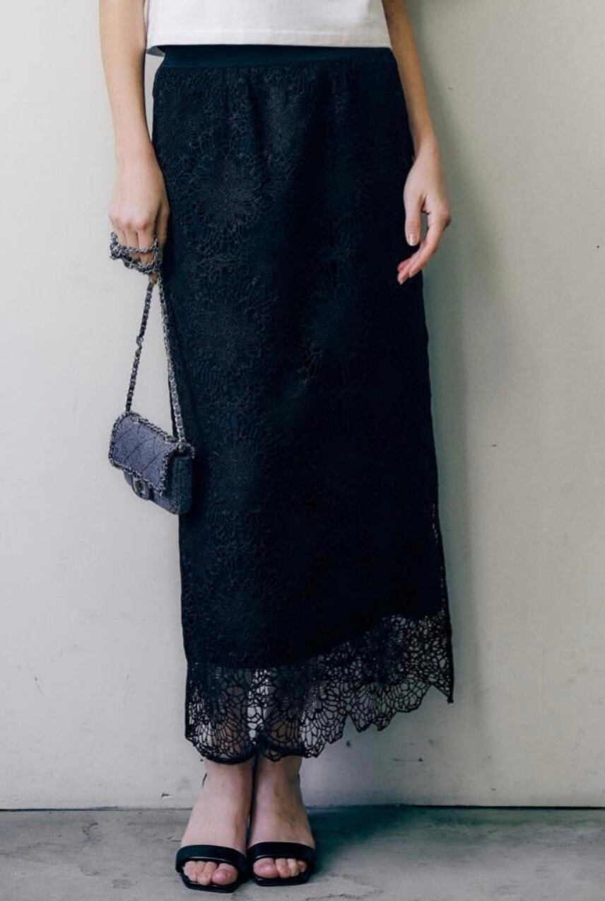 繊細なフラワーモチーフが映える総レースIラインスカート✨