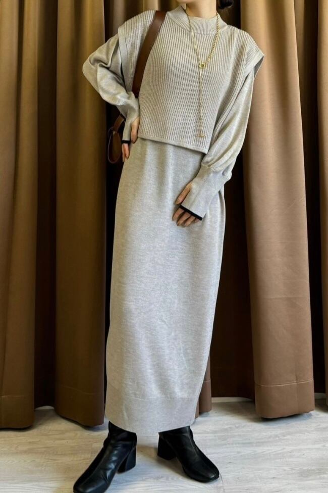 ベストとニットワンピースがセットになったレイヤードワンピース✨
