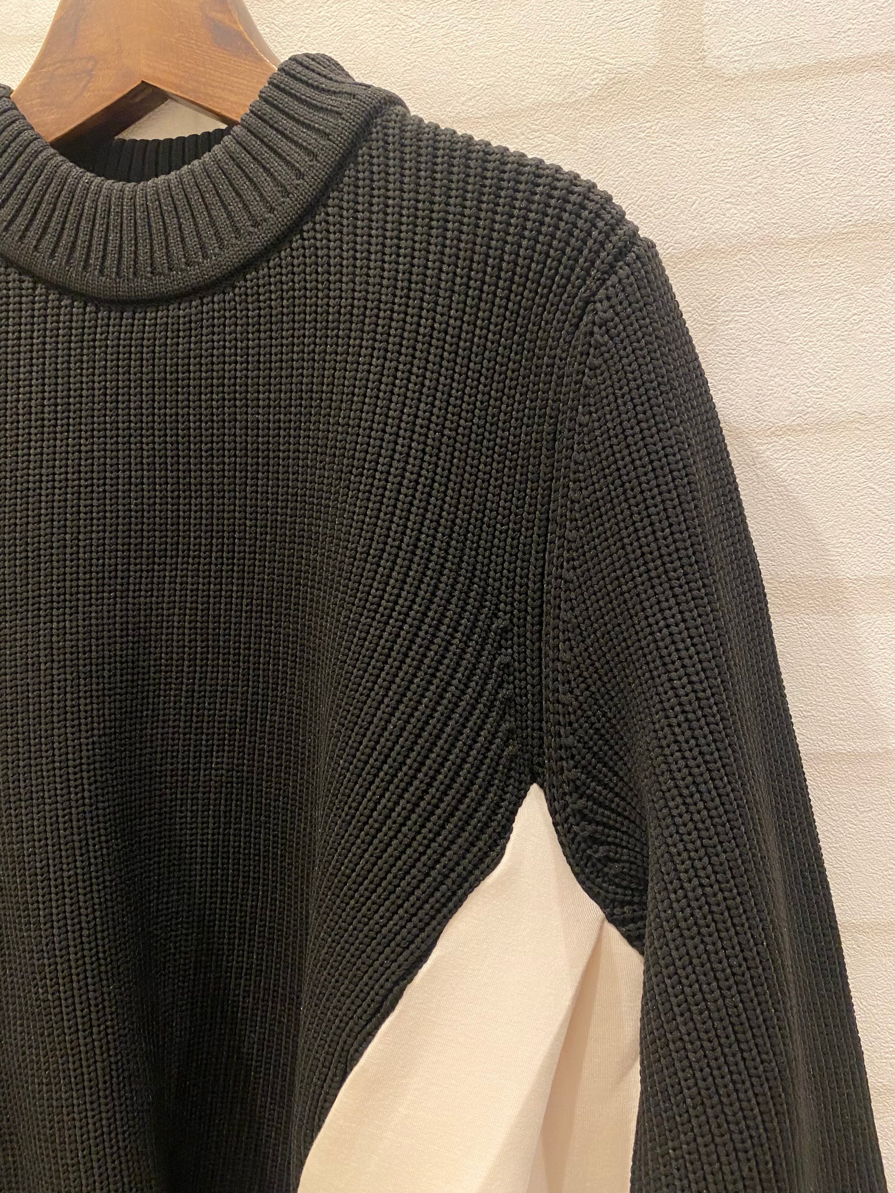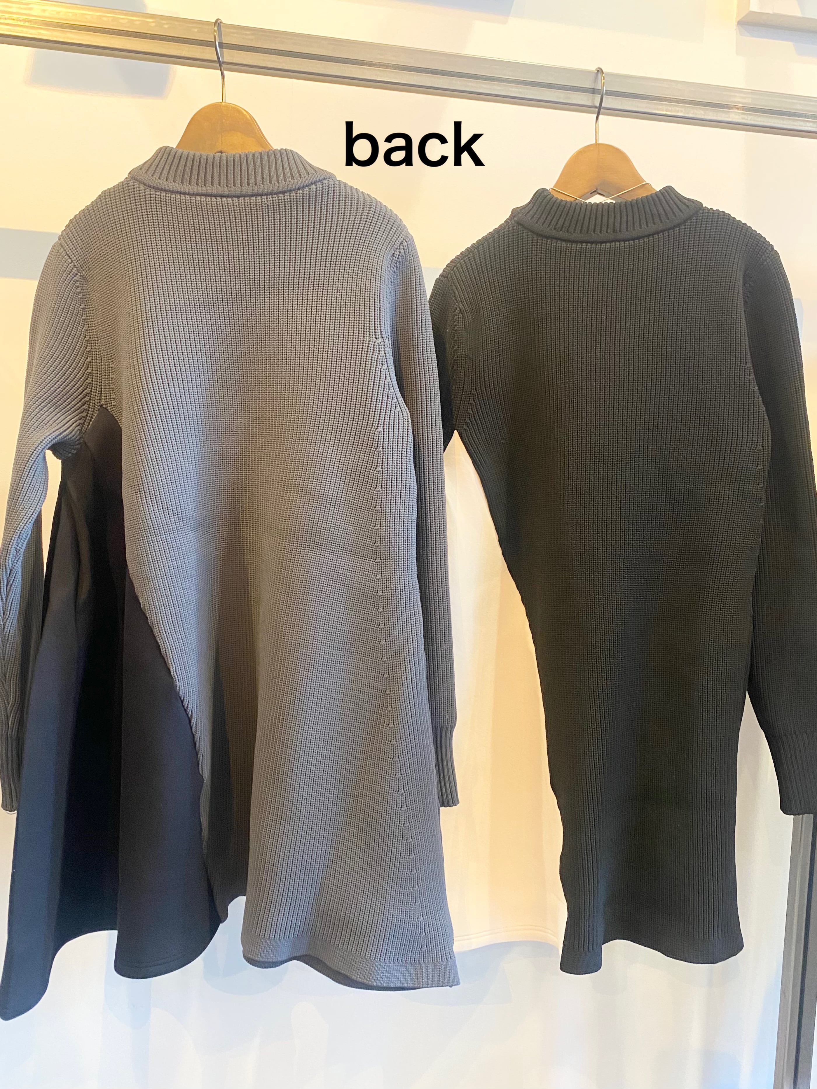 軽いポリエステルのニットとハリのあるボンディング生地との切替がポイントの異素材ドッキングチュニックワンピース✨